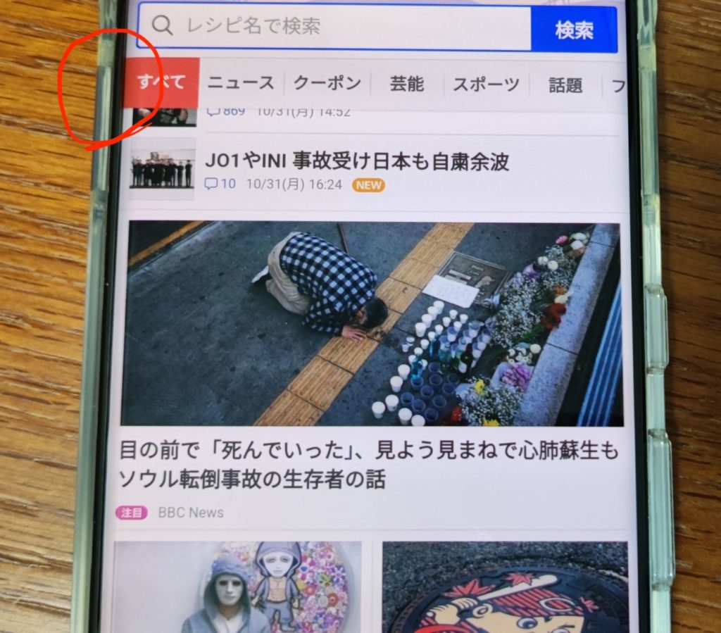 - pixel 7 proはエッジディスプレイとなっています.使っている最中に手が触れてしまうということは自分はありませんが,画面の端が少し丸みを帯びているのが違和感を感じます.下の画像の赤い所が開くサイトによっては気になります.