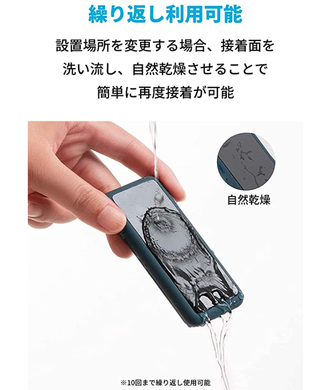 裏は木製,ガラス,金属など色々なところにくっつく素材で,洗い,乾かすことによって粘着力が復活するそうです.