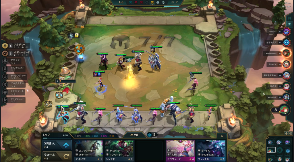 TFTはいわゆるオートチェスと言ったジャンルのゲームです.1つの盤上でお互いに集め,設置したコマが自動で戦います.そのため,駒に対する知識や盤にどのように置くかなどの戦略がこのゲームでは重要となります.